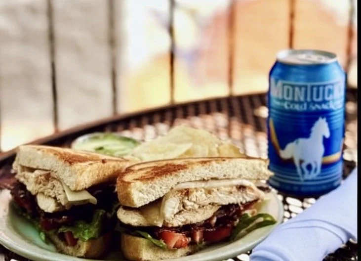 Marinated chicken, peppered bacon, provolone, lettuce, and tomato on grilled sourdough with basil mayo on the side. Side item of your choice.